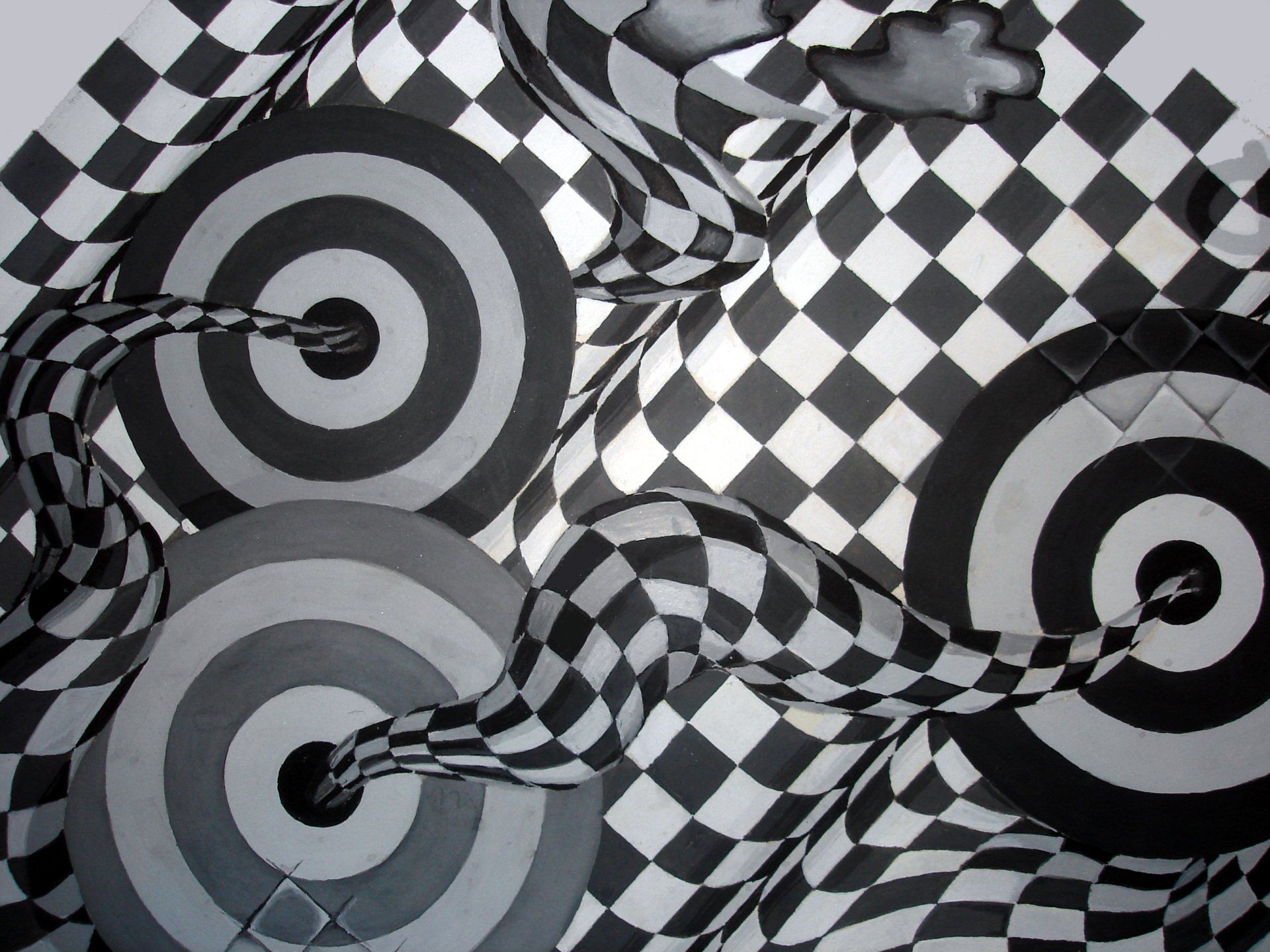 I am inspired by dimension, dark and light, textures and patterns which are reflected in my artwork that ranges from jewelry to paintings. I have focused on jewelry art—one of a kind sterling silver pieces which usually incorporate semi-precious, unique gemstones (which I have had a passion for also since childhood). My family traveled across the northwestern United States to mine gemstones for our vacations in the summer, so what is more natural than to use these in my art?