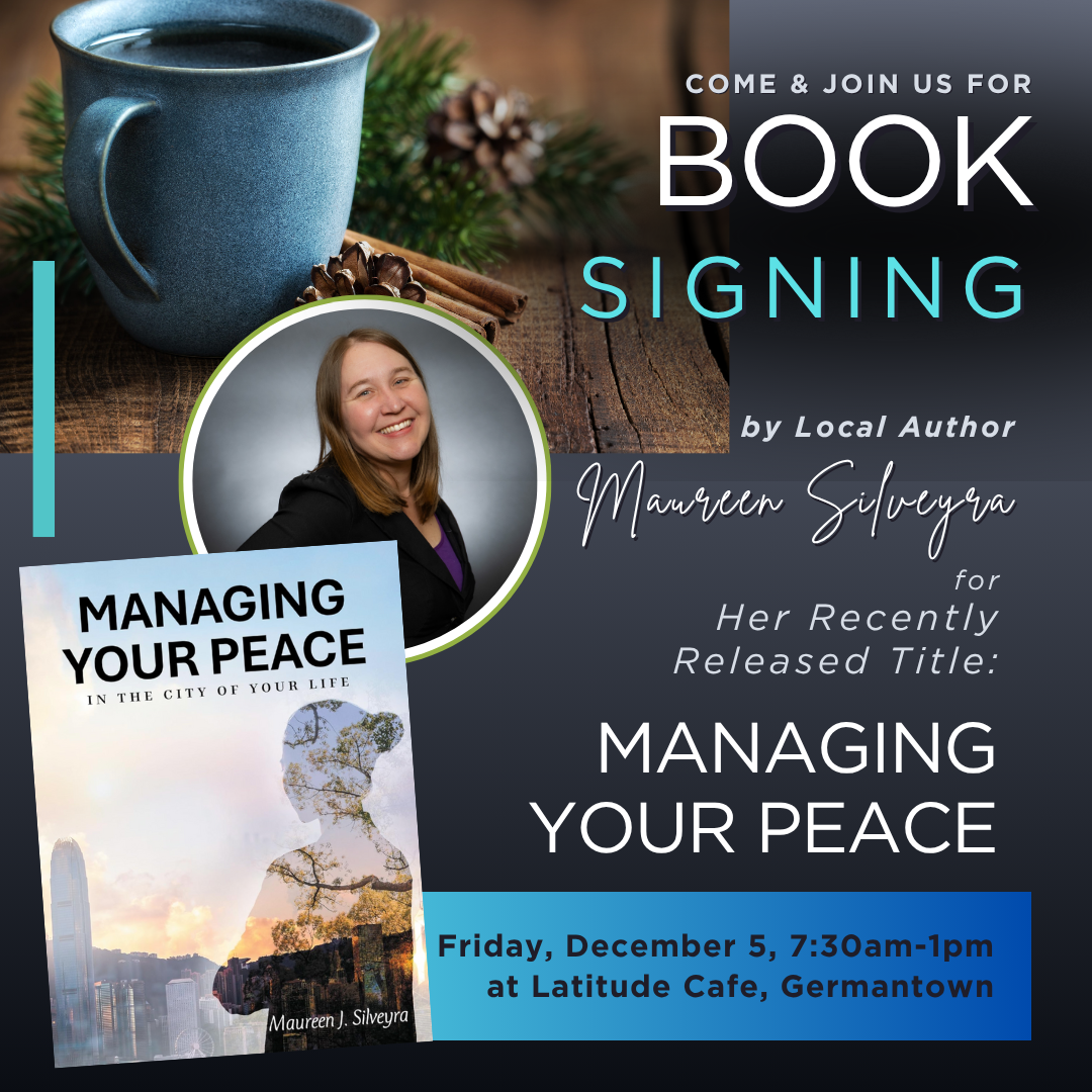 Come buy a coffee and stop over at my table to check out the newly released book/Bible study, Managing Your Peace. See how you can learn to find peace in a busy, and frantic world.